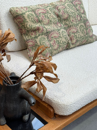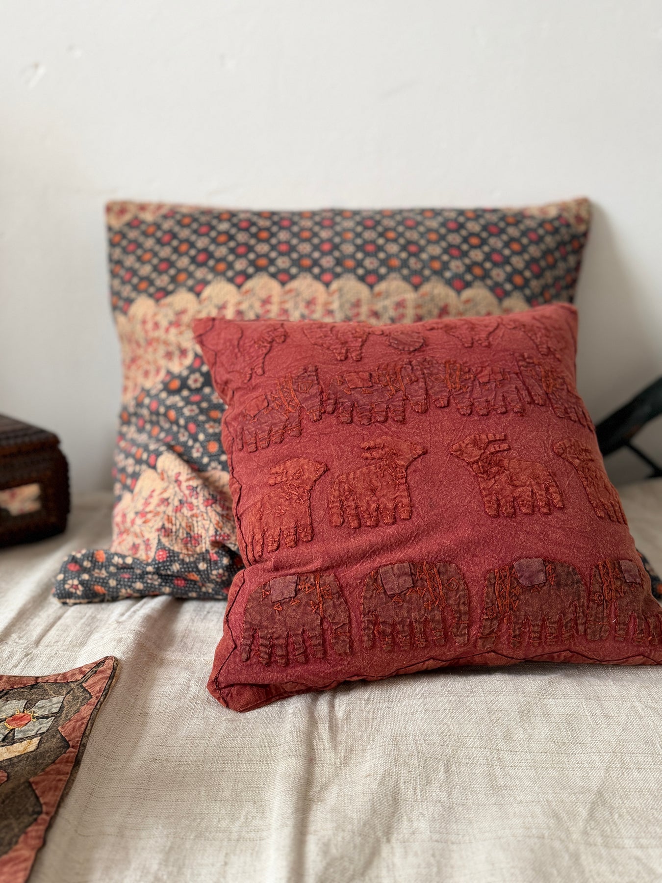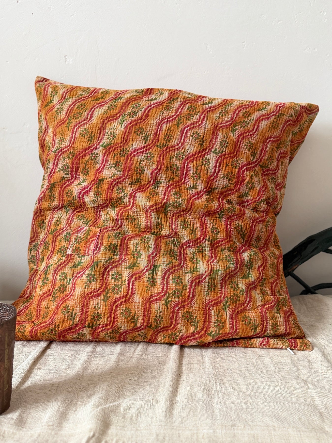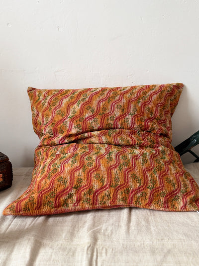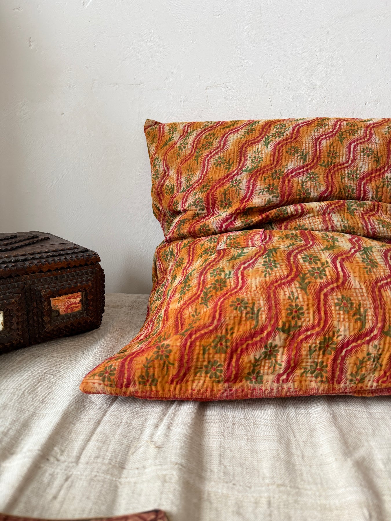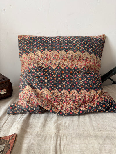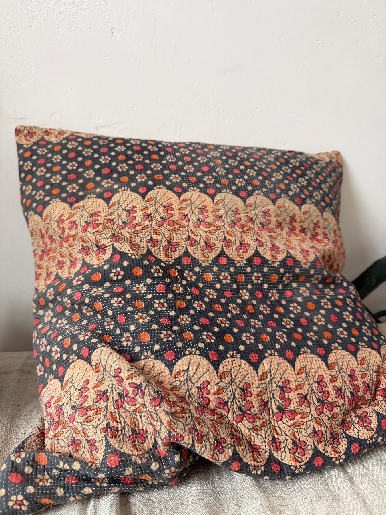 Le Kantha se réfère à un style particulier de travail à la main. Ces pièces ont été trouvées dans le nord de l'Inde. Le kantha est un art traditionnel de broderies. En utilisant Saris et fils colorés pour créer des dessins délicats, les couturières transforment d'anciens Saris en jolies couvertures. 100 % RECYCLAGE