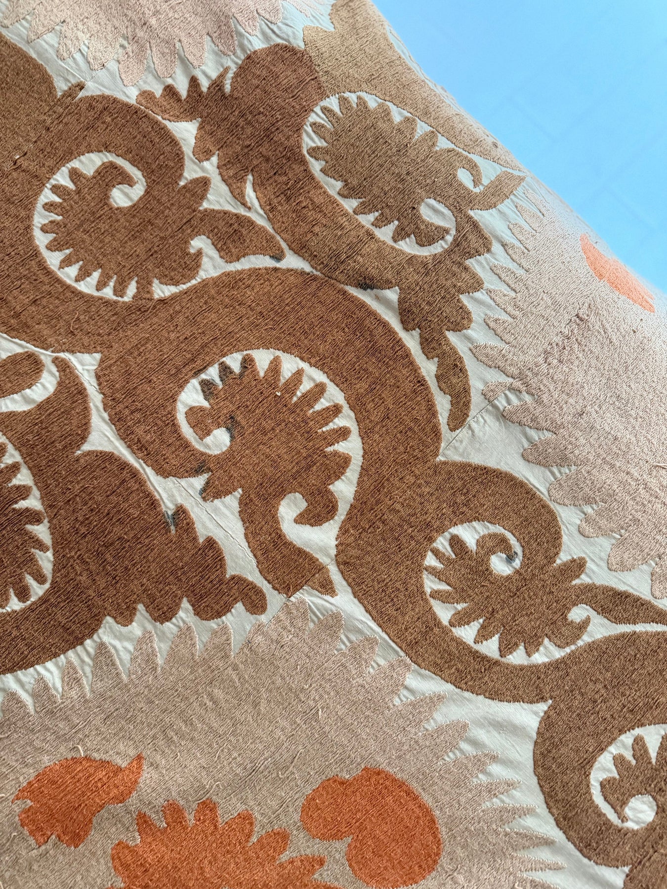 Tissu brodé entièrement à la main , typique de l'Ouzbékistan