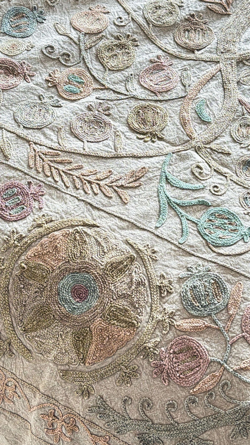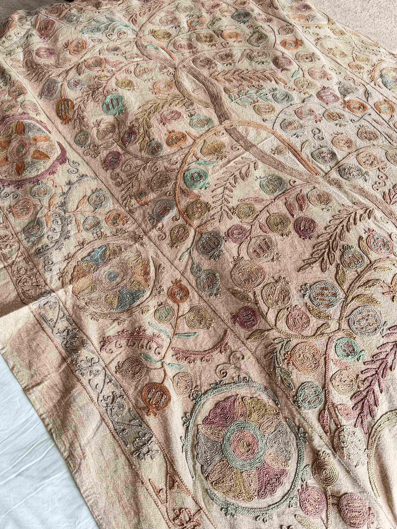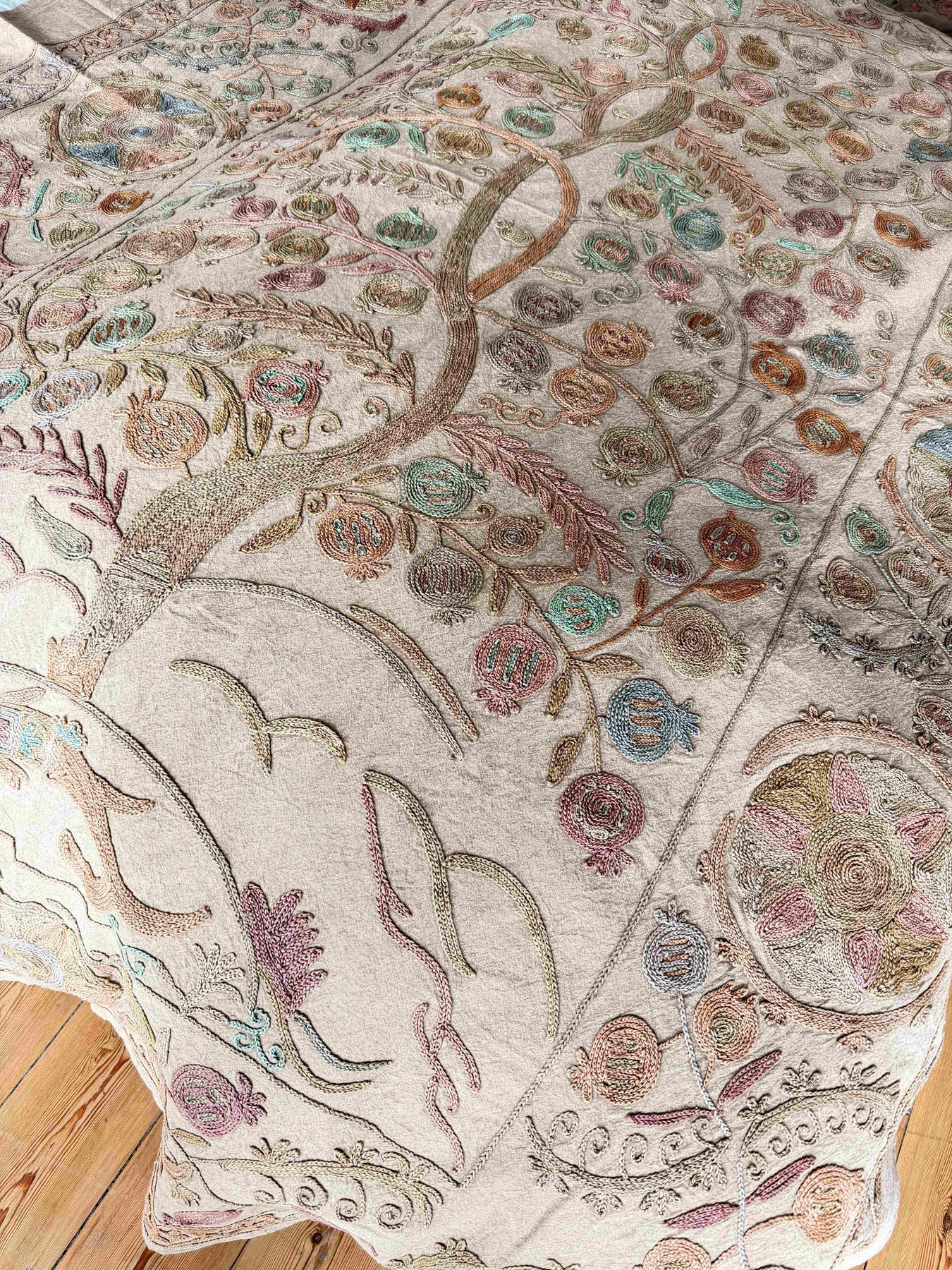 Grand Suzani fait main, broderies main en fil de coton. Cette pièce unique est parfaite pour habiller vos intérieurs