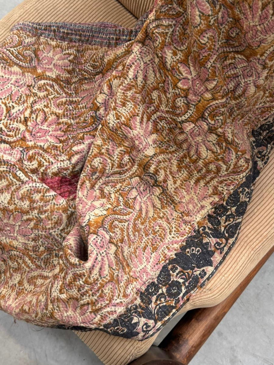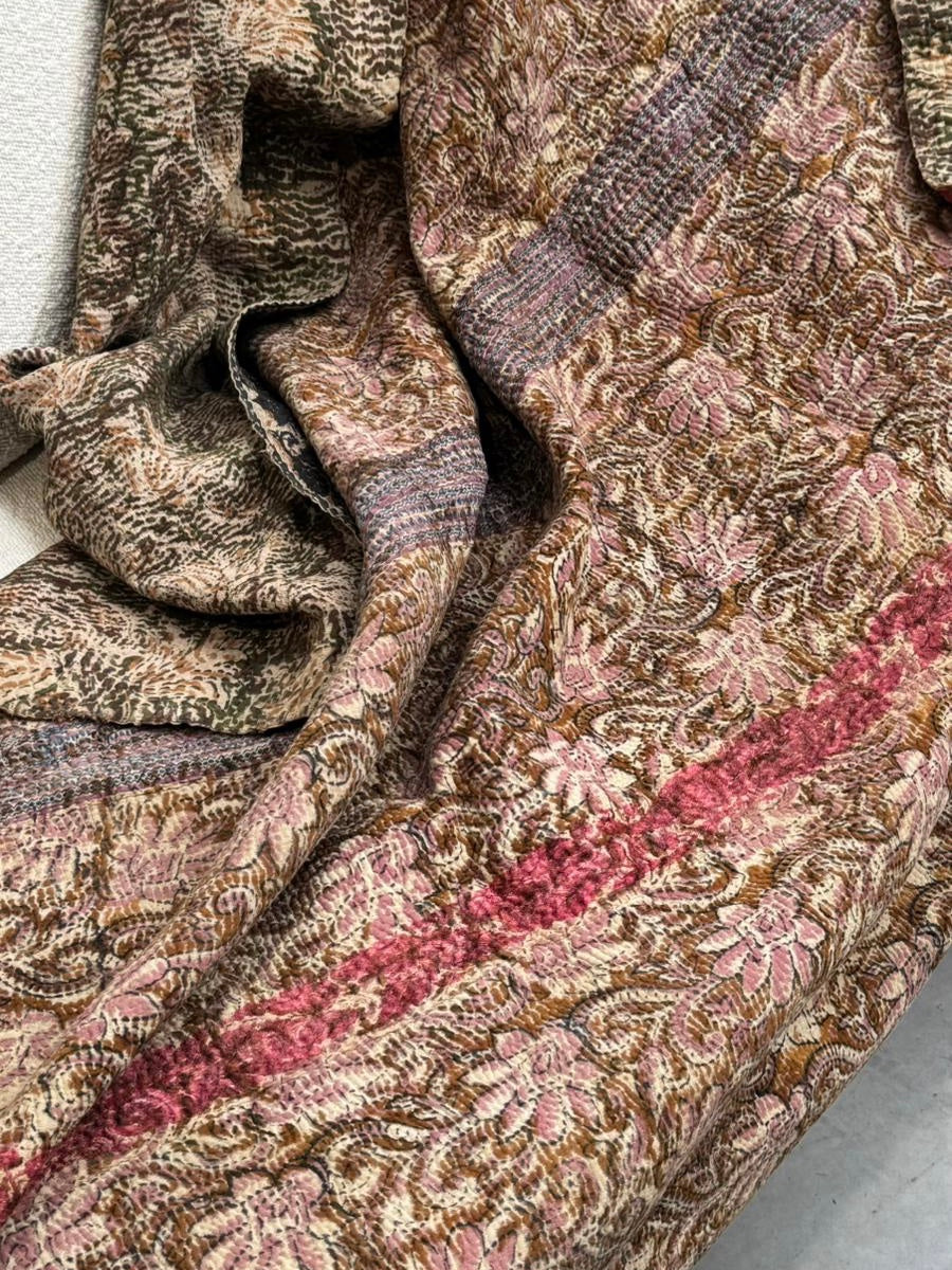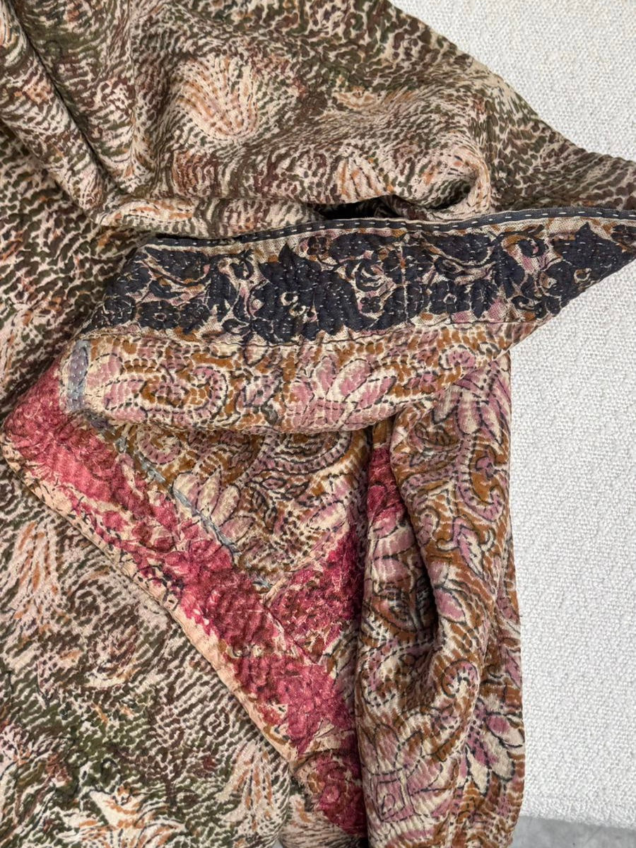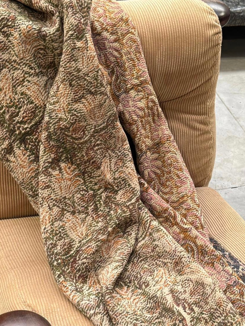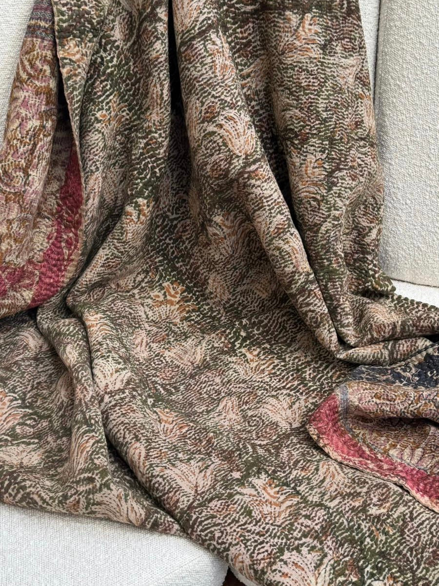 Le kantha est un art traditionnel de broderies, en utilisant Saris et fils colorés pour créer des dessins délicats, les couturières transforment d'anciens Saris en jolies couvertures.