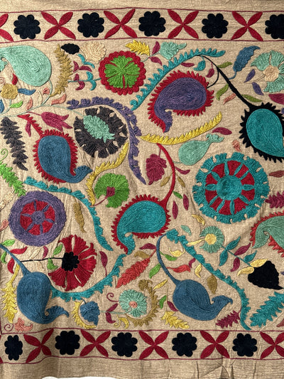 Grand Suzani fait main, broderies main en fil de coton. Cette pièce unique est parfaite pour habiller vos intérieurs
