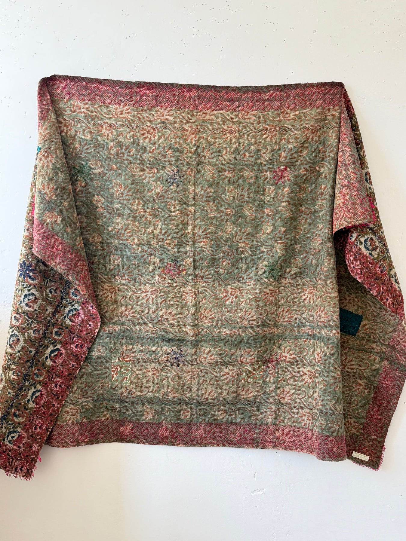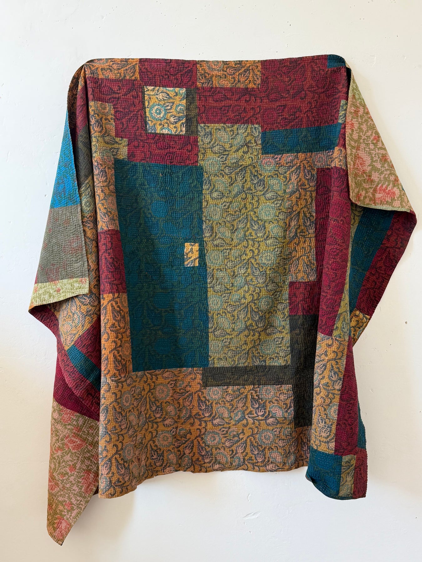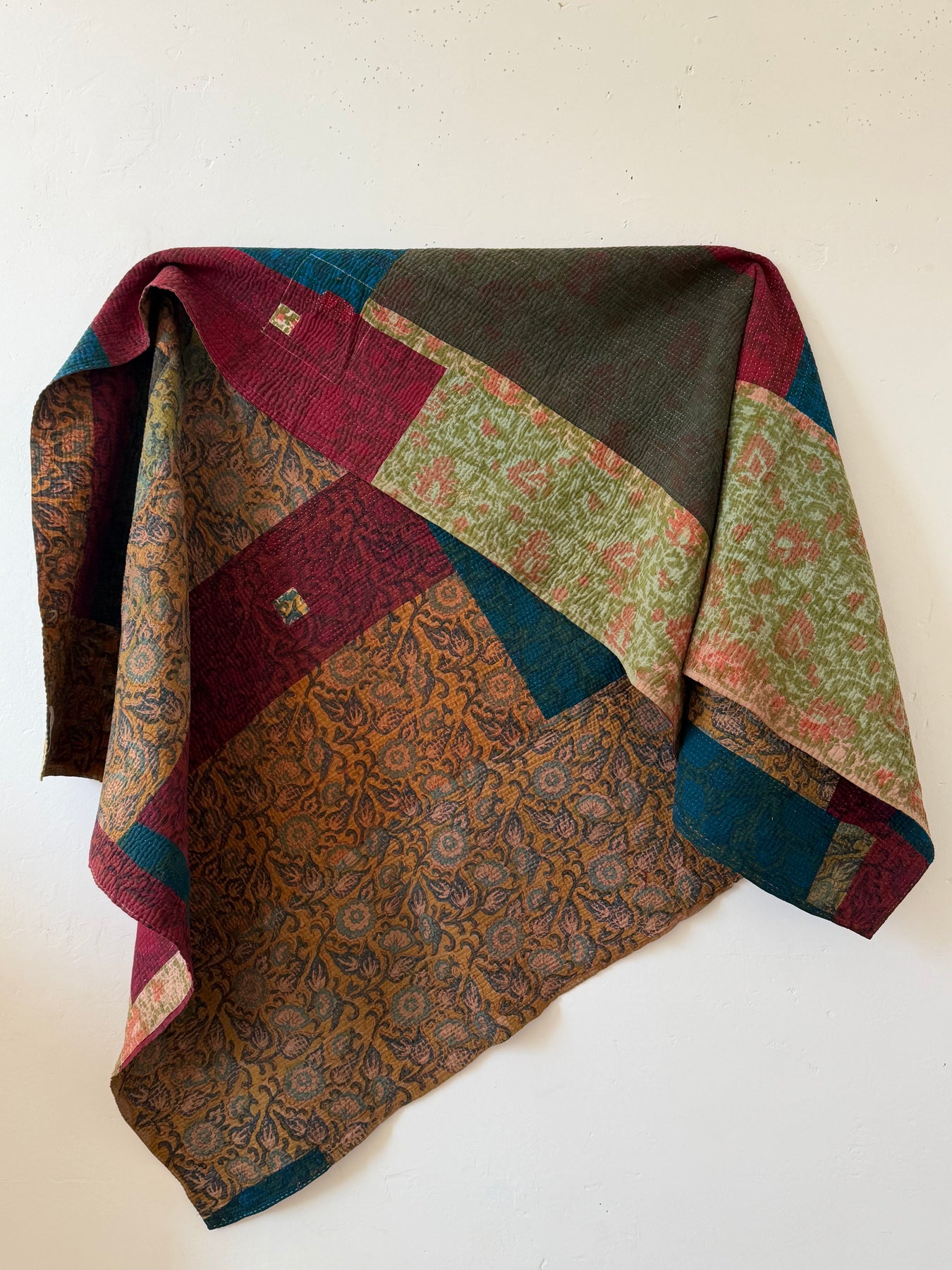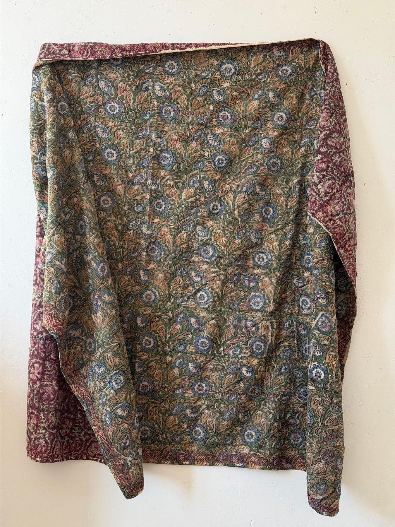 Le kantha est un art traditionnel de broderies, en utilisant Saris et fils colorés pour créer des dessins délicats, les couturières transforment d'anciens Saris en jolies couvertures.