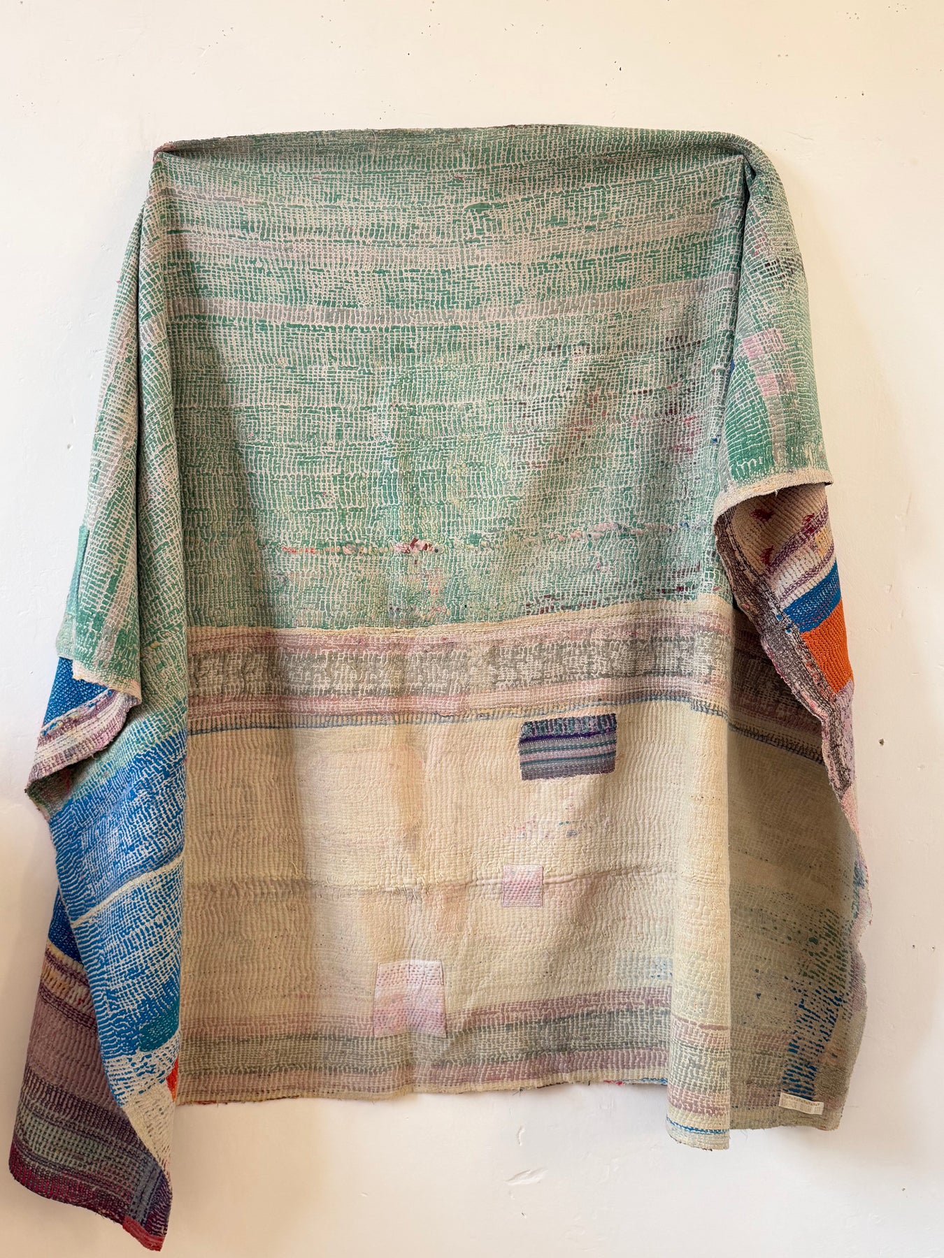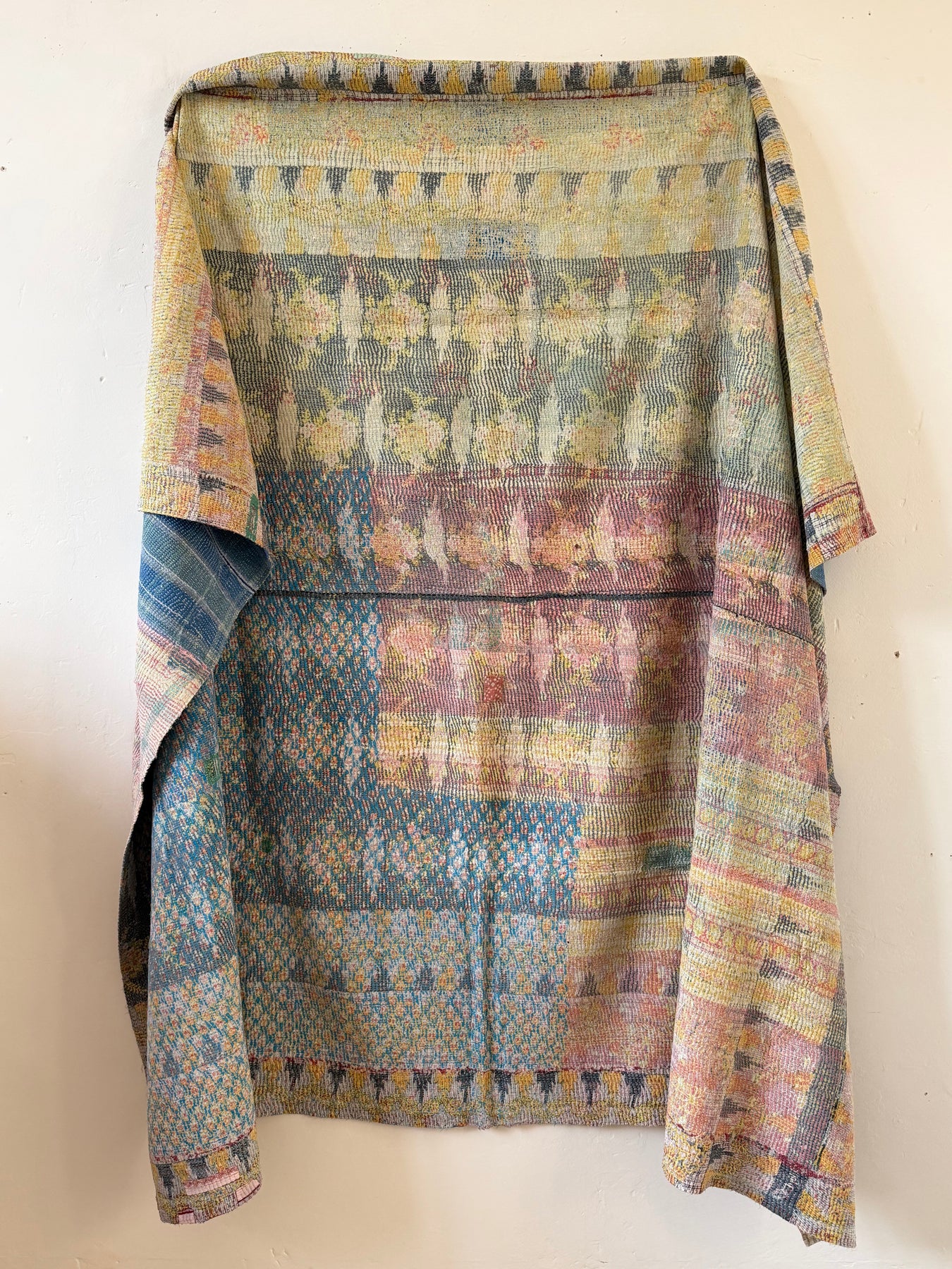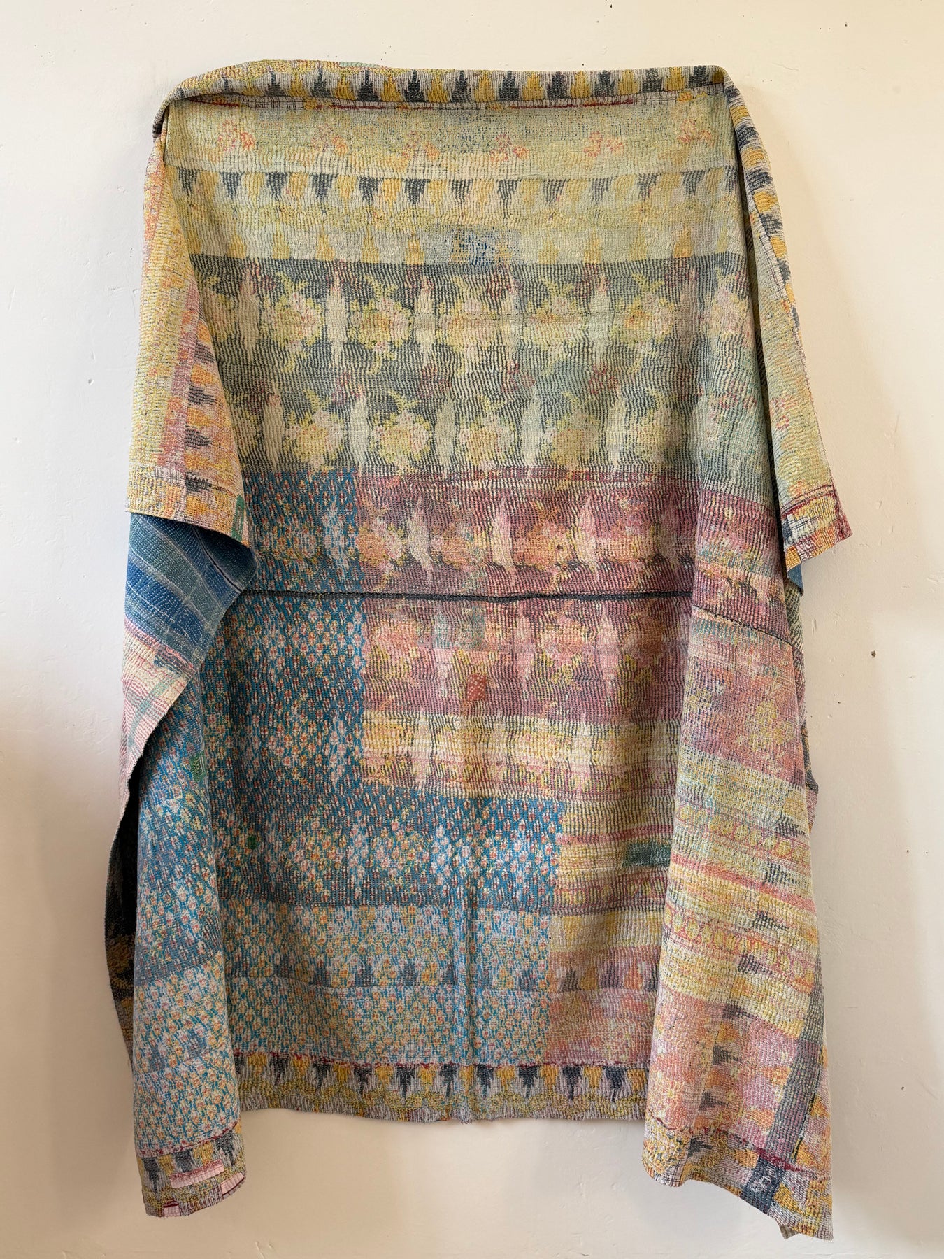 Le kantha est un art traditionnel de broderies, en utilisant Saris et fils colorés pour créer des dessins délicats, les couturières transforment d'anciens Saris en jolies couvertures.