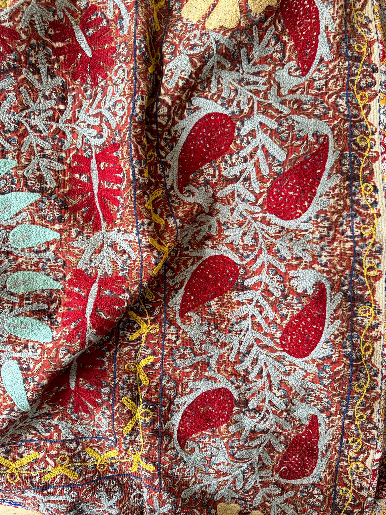 Le kantha est un art traditionnel de broderies, en utilisant Saris et fils colorés pour créer des dessins délicats, les couturières transforment d'anciens Saris en jolies couvertures.